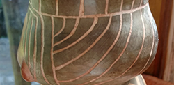 Descripción: En esta magnífica obra elaborada al modo pre incaico por la artista residente samaipateña, nacida en Trenquelauquen Argentina, María Lis Moro nos trae a la vida un trabajo único con un acabado extremadamente fino, horas de bruñido a mano y joyería en alpaca con reconstituido de Turmalina negra. Los motivos escalonados del traje, pintado con engobe que son oxidos naturales, hacen referencia a la cosmovisión andina, la cruz de la chacana. Precio: 2200 Bs. Envío a Santa Cruz*: 20 Bs. Envío dentro de Santa Cruz: a cotizar Tiempo estimado: 1 día CÓDIGO: PD-04 Pedidos: WhatsApp +591 67796535