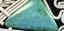 Descripción: Una singular pieza de arte, un creativo trabajo de metal en filigrana inspirado en los patrones de las culturas preincaicos, combinado con cuero, un divino collar que sostiene una piedra de Turquesa Peruana triangular de 4 cm. Elaborada por Eduardo del taller Gopal, artesano boliviano natural de Santa Cruz y residente samaipateño. Esta piedra en particular proviene de Perú, usado por la cultura inca en adornos y en los Tumi, instrumentos ceremoniales. Su formación es parecida al cuarzo y se halla encima de las vetas de cobre en combinación con malaquita y otros minerales secundarios. Actualmente se la usa como amuleto y se le atribuye el poder de equilibrar la energía e incentivar la creatividad, está relacionada a la feminidad y al autocontrol. Precio: 500 Bs. Envío a Santa Cruz*: incluido Envío dentro de Santa Cruz: a cotizar Tiempo estimado: 1-2 días CÓDIGO: PJ-02 Pedidos: WhatsApp +591 67796535
